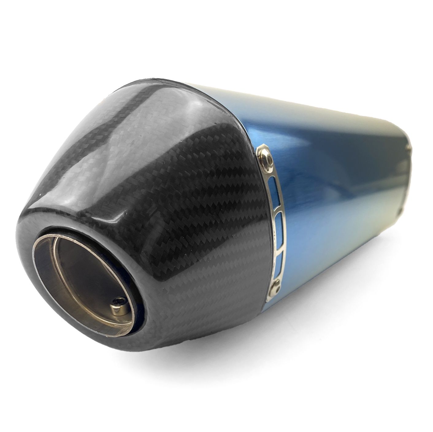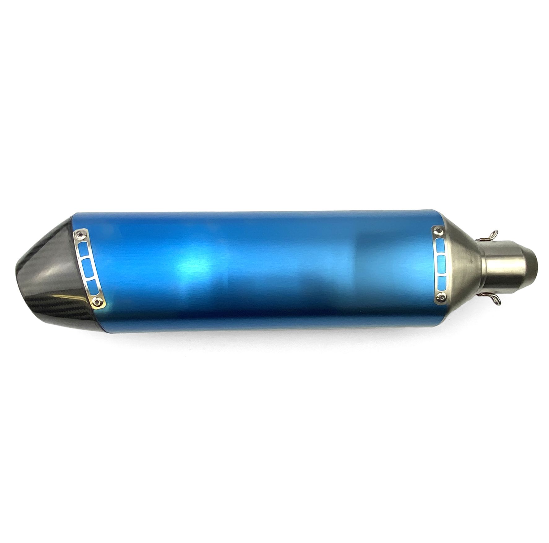 UNIVERSAL 4-STROKE EXHAUST MUFFLER 51mm ID BORE ALUMINIUM BLUE CARBON CAP