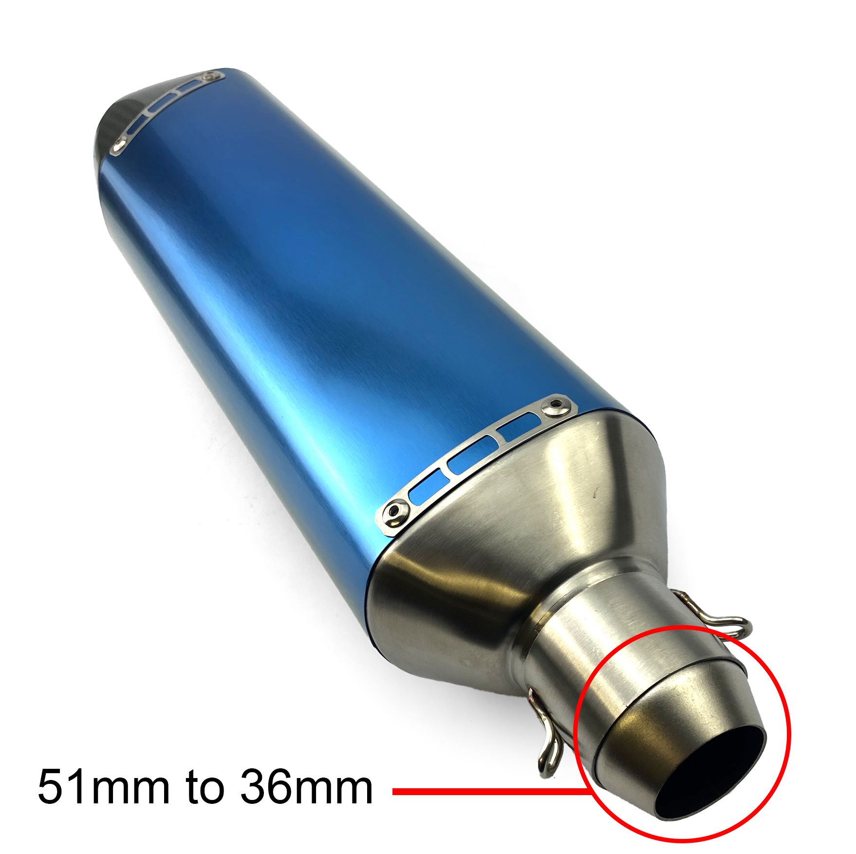 Versatile Fit: With a 51mm bore, this muffler is designed to fit most header or mid-pipes. It also comes with a 51mm reducer pipe that drops the bore to 36mm, allowing for compatibility with an even larger range of setups.