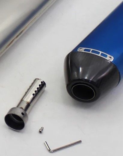 Premium Construction: The muffler features an anodized blue aluminum body for durability and a sleek appearance. The stainless steel inlet ensures a robust connection, and the carbon end cap adds a premium finish.
