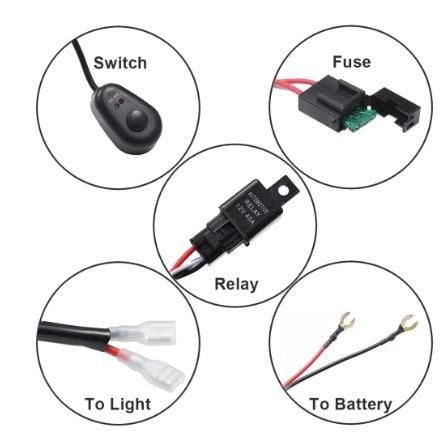 UNIVERSAL LED SPOT LIGHT BAR WIRING LOOM, FUSE / RELAY / CONNECTORS / SWITCH