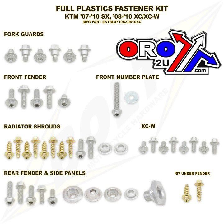 We have done the research for you and put together a fastener kit with all the factory style hardware you need to fasten your front fender, number plate, fork guards,