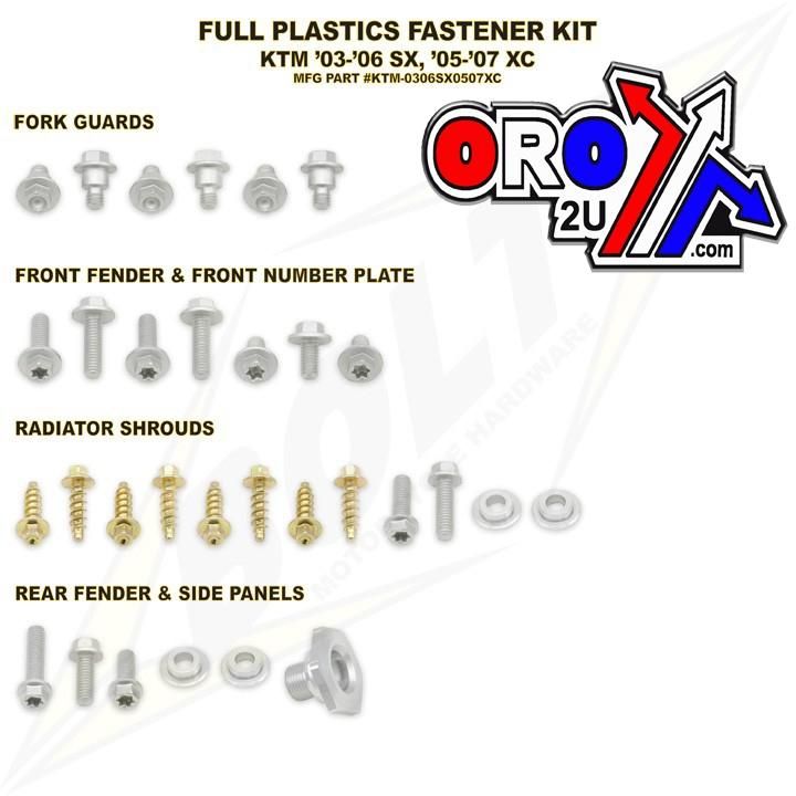 We have done the research for you and put together a fastener kit with all the factory style hardware you need to fasten your front fender, number plate, fork guards,