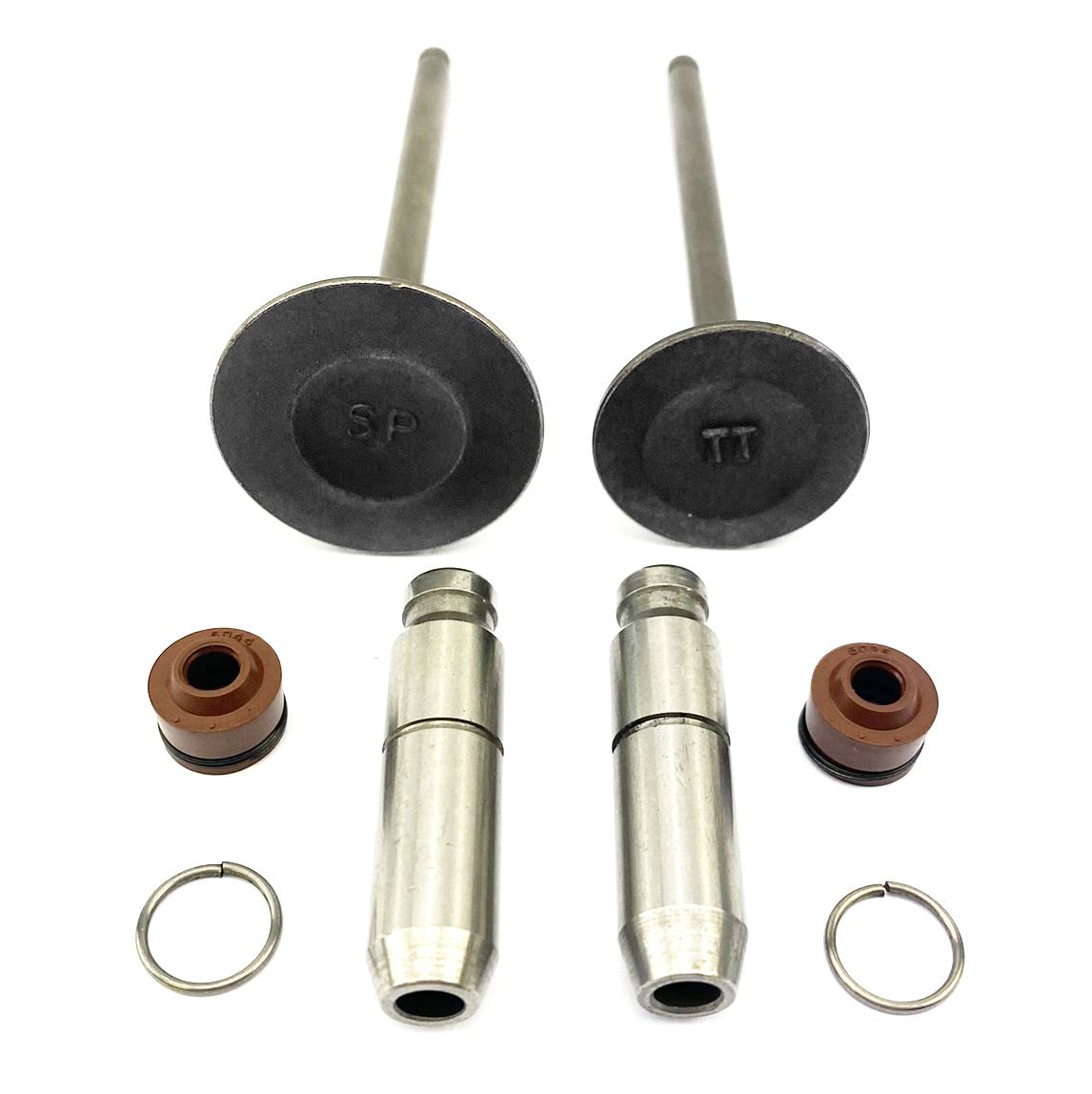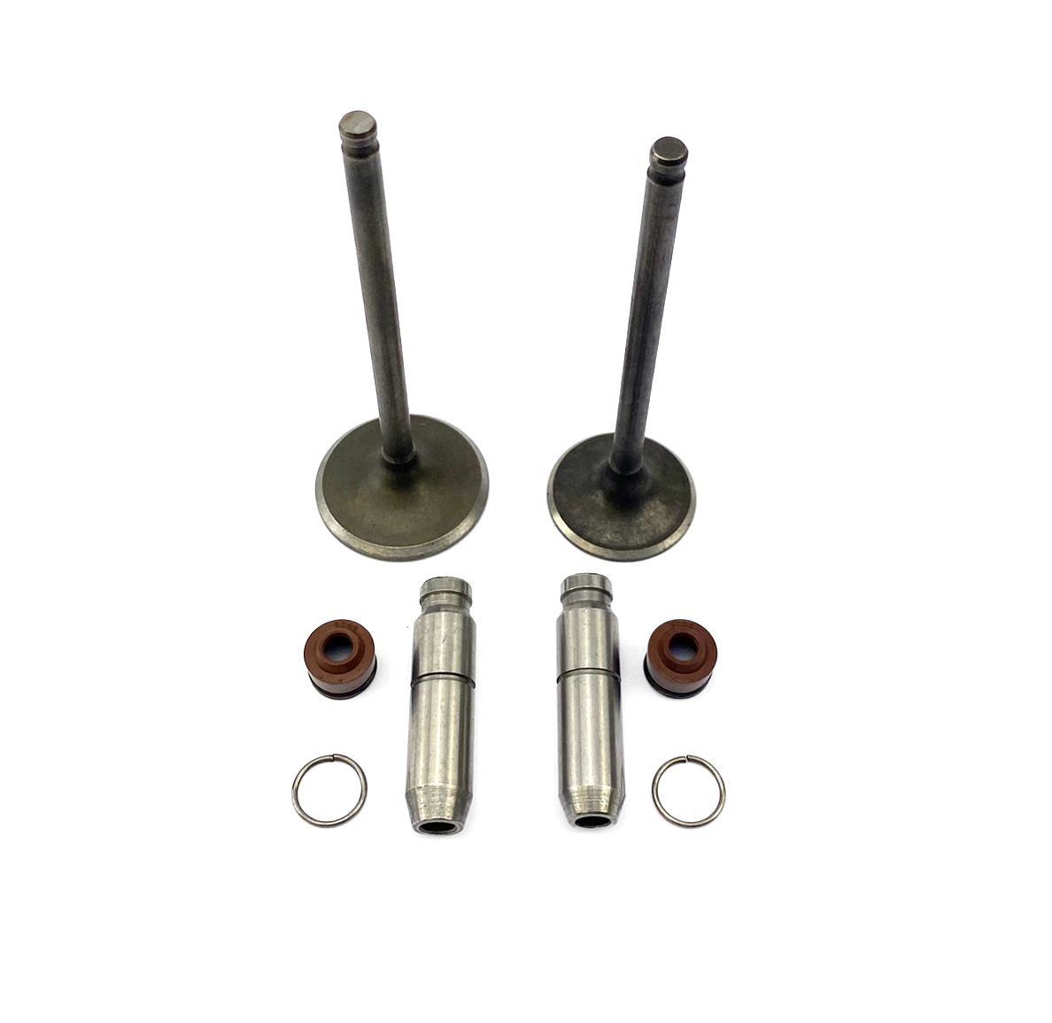 Contents: 1 x Intake valve, 1 x Exhaust valve, 2 x Valve guides (oversize), 2 x Valve stem seals