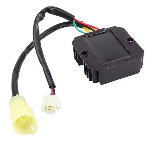 This voltage regulator is a direct OEM replacement for select Honda TRX 300cc Fourtrax models, designed to manage three-phase electrical systems with sensor integration. It is engineered to meet the demands of modern electrical loads while utilizing stock mounting locations.