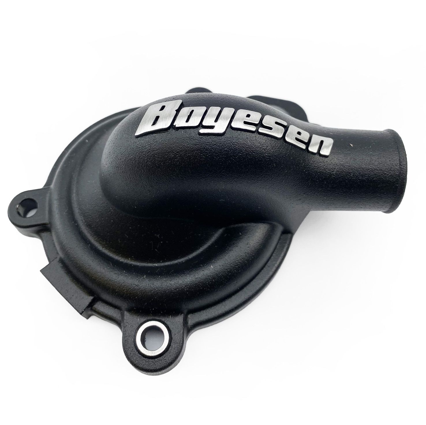 This black Boyesen WPK-80AB Supercooler water pump cover is engineered for select 2016–2023 Can-Am Outlander, Renegade, and Commander ATV/UTV models. Featuring a 1″ O.D. spigot and optimized coolant flow design, it helps lower engine operating temperatures to protect internal components and enhance long-term performance in rugged environments.