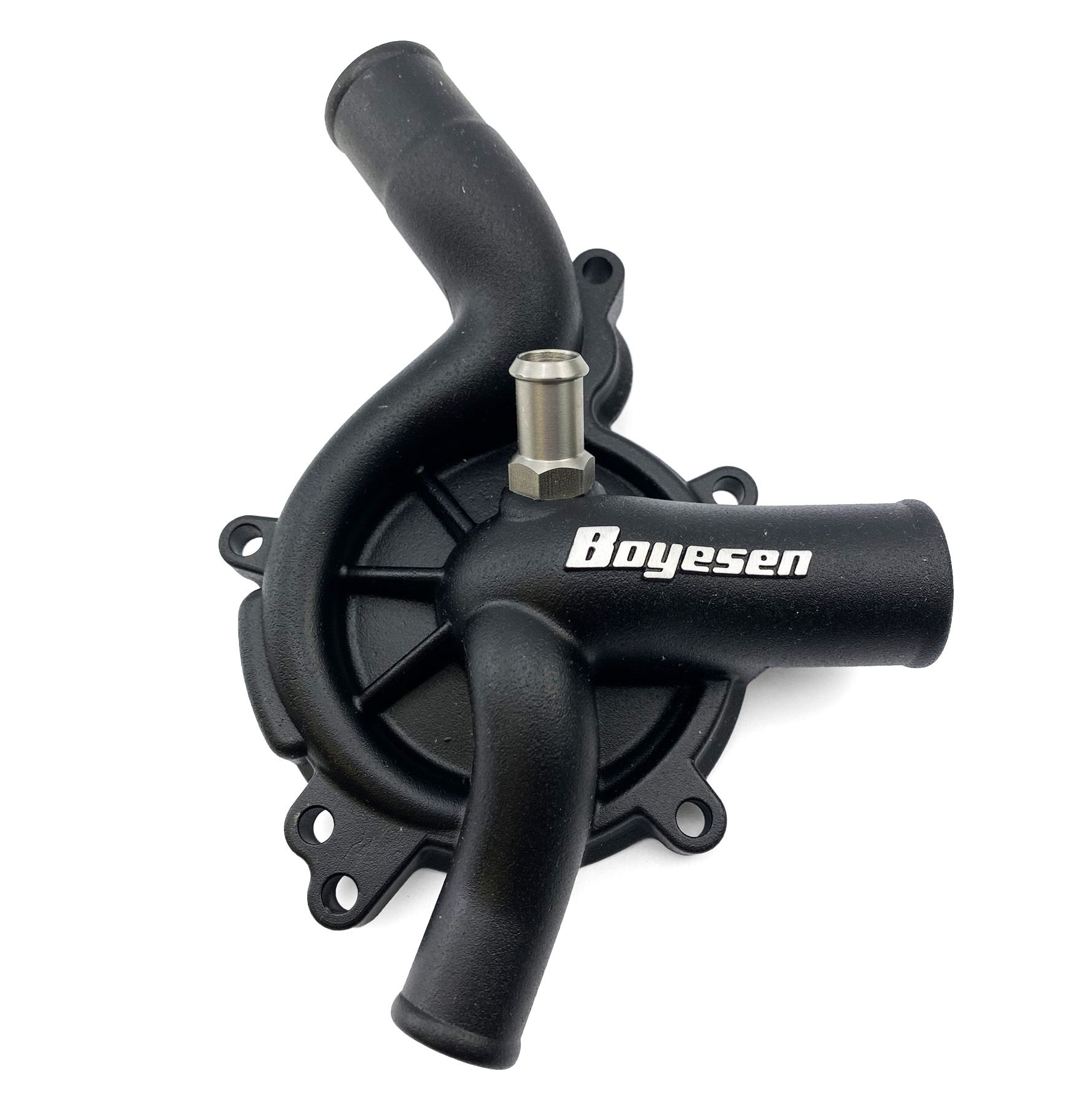 This black Boyesen WPK-60B Supercooler water pump cover and impeller kit is designed for Polaris RZR XP 1000 models from 2014–2015, including Desert and High Lifter Editions. Engineered to improve coolant flow and reduce cavitation, it enhances cooling efficiency to protect engine components during high-performance operation.