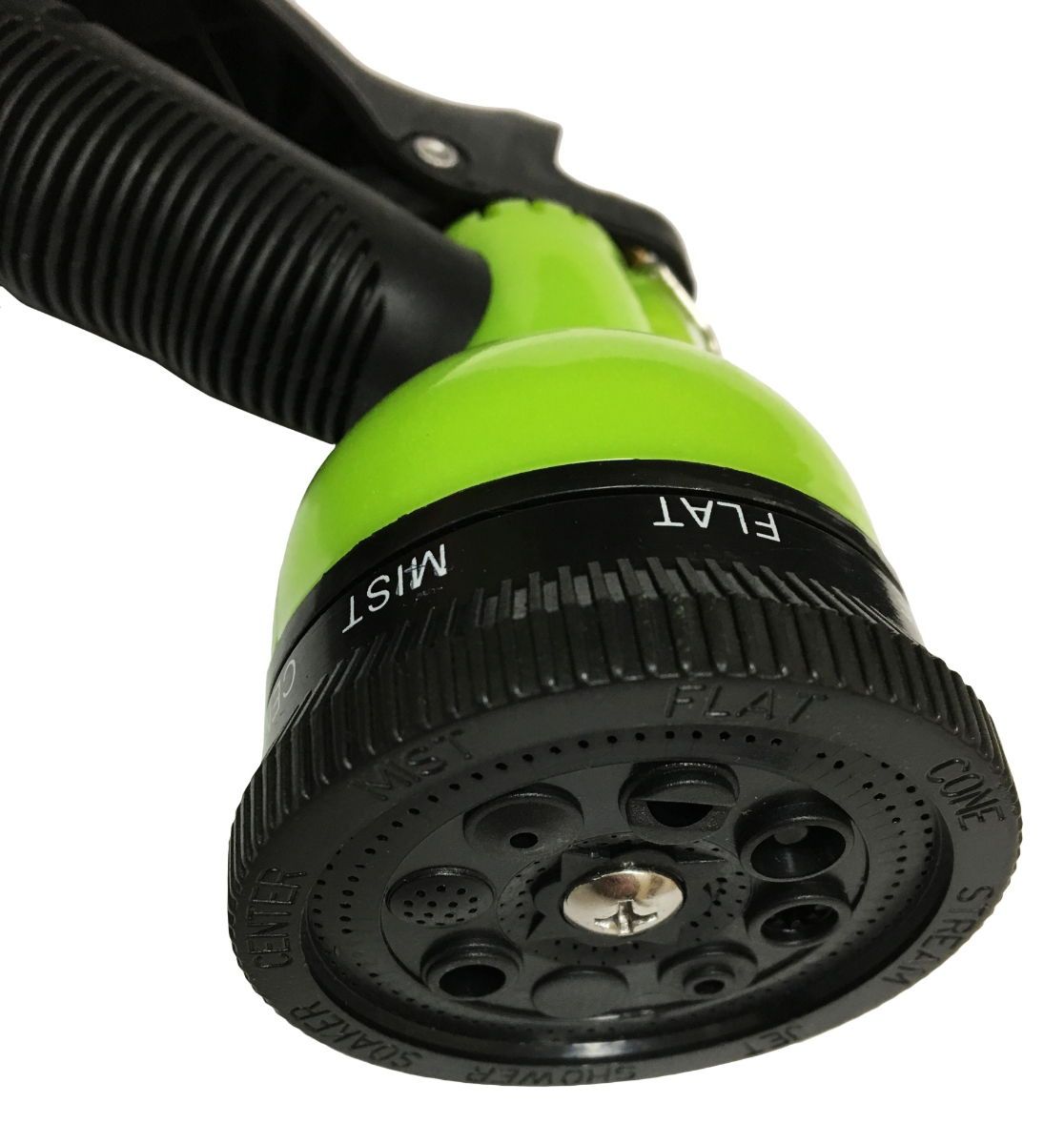 - Eight spray patterns: quad, fan, soaker, cone, mist, shower, flat, jet