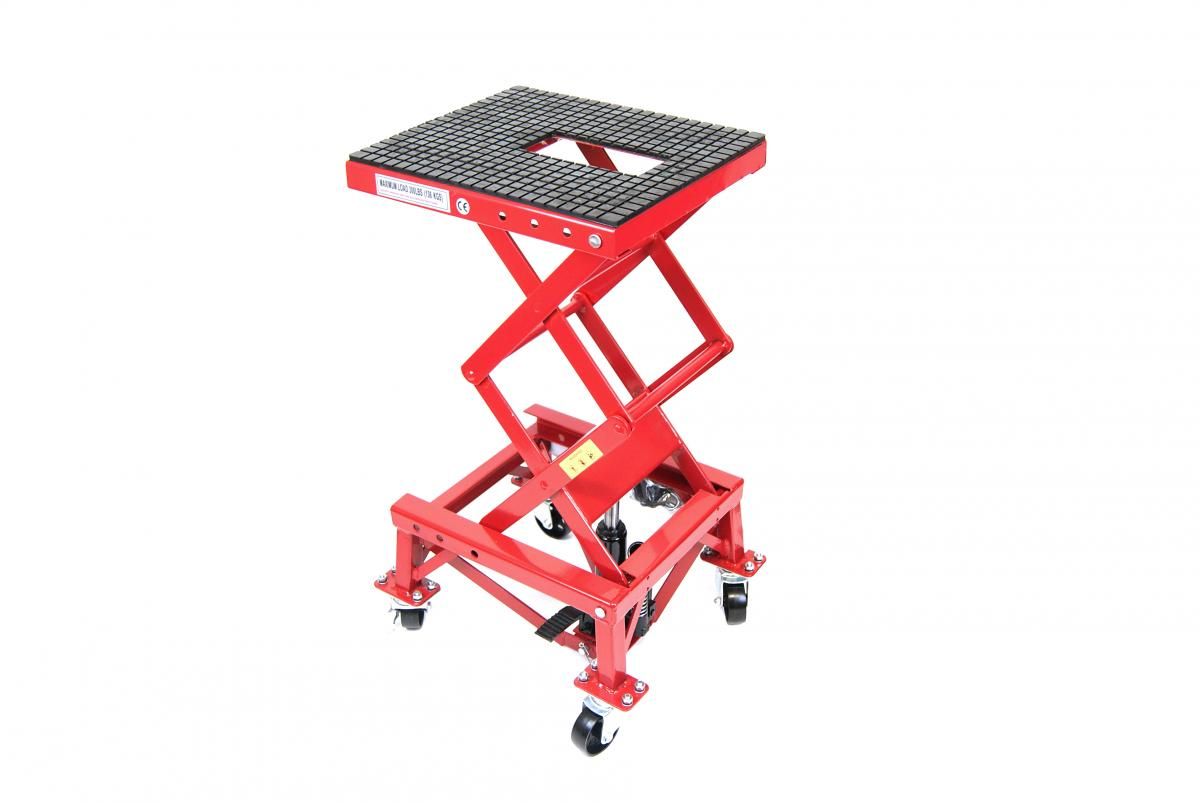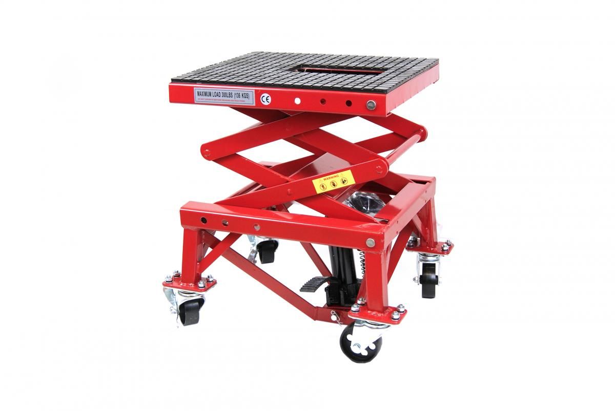 WHEEL ABOUT LIFT HDY 135KGS, RED HYDRAULIC SCISSOR STAND, MAX LIFT WEIGHT 135 KGS