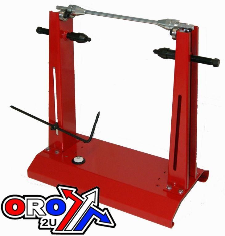 A multi function wheel balancing & truing stand. Portable design. Designed for use on almost any wheel with a 10″ hub up to a 21″ hub. Balancing stand has one level eye to ensure accuracy. Steel tapered cone stoppers can be used with wheels with an inside wheel bearing diameter of 16 to 30mm.