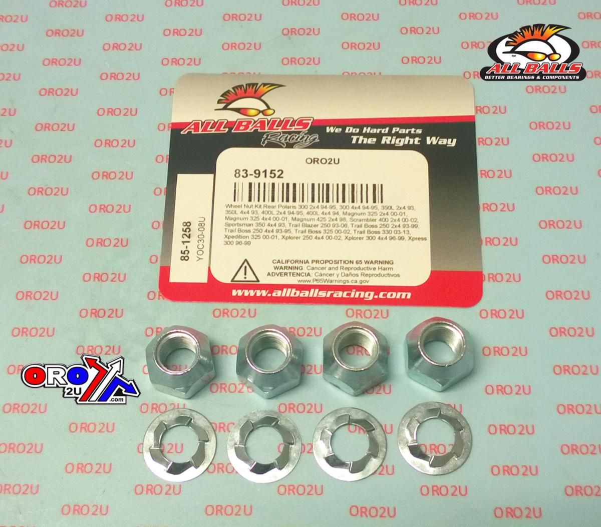 WHEEL NUT & WASHER KIT REAR, ALLBALLS 85-1258, 7542714, Polaris 300 2×4 94-95, 300 4×4 94-95, 350L 2×4 93, 350L 4×4 93, 400L 2×4 94-95, 400L 4×4 94, Magnum