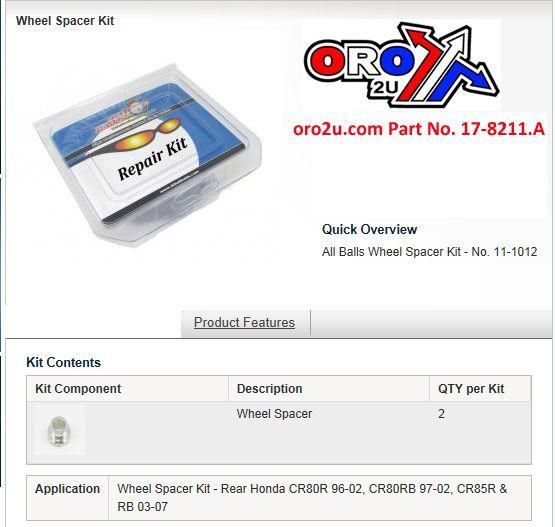 WHEEL SPACER KIT CR80 CR85, ALLBALLS 11-1012 HONDA