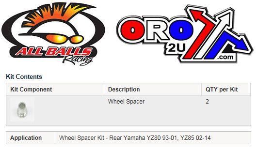 WHEEL SPACER KIT YZ80 YZ85, ALLBALLS 11-1076