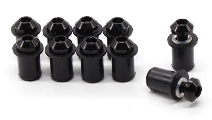 WINDSHIELD BOLT KIT BLACK M5 X 16mm (PACK OF 10) INCLUDES WASHERS AND WELL NUTS