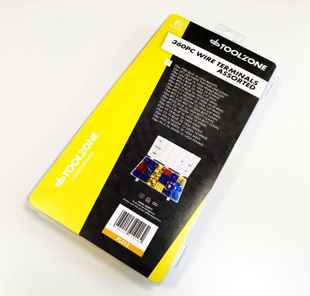 WIRE TERMINALS ASSORTMENT BOX 360PC BRASS 12-10ga 16-14ga 22-16ga – TOOLZONE KDPPL312