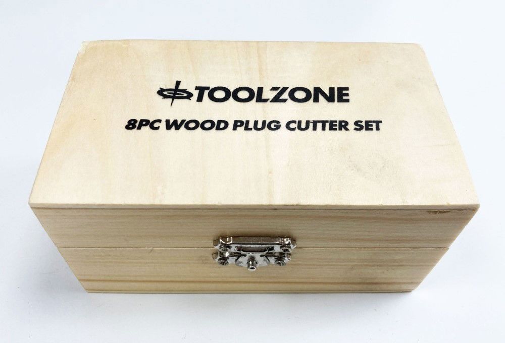 WOOD PLUG CUTTER SET 8PC 6mm 10mm 13mm 16mm 10mm SHANK IN WOOD BOX – TOOLZONE KDPWW132