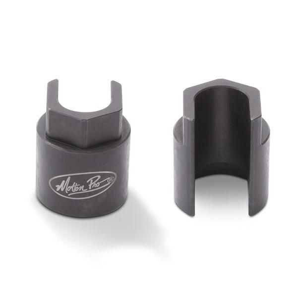 The Motion Pro WP Shock Clevis Jam Nut Socket is a specialized tool designed for the removal of oval-profile clevis jam nuts commonly found on WP shock absorbers. Its open-end design allows for the removal of the clevis and servicing of the rebound adjuster without the need to disassemble the shock.