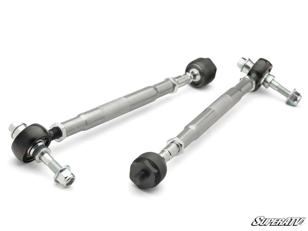This heavy-duty tie rod kit is a stock-length replacement for Yamaha Wolverine X2 and X4 models. It features nearly 1” diameter tie rods for increased strength and durability. The kit utilizes hardened steel monoball tie rod ends with M14 x 1.5 threads and is designed for easy, on-the-fly adjustability without the need for disassembly.